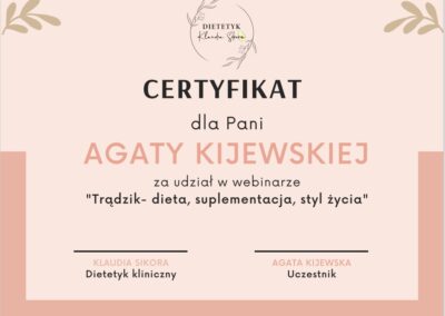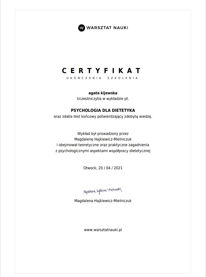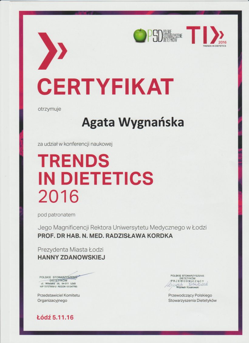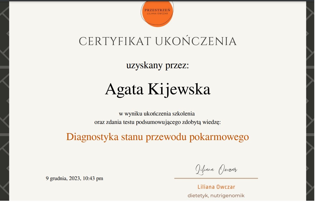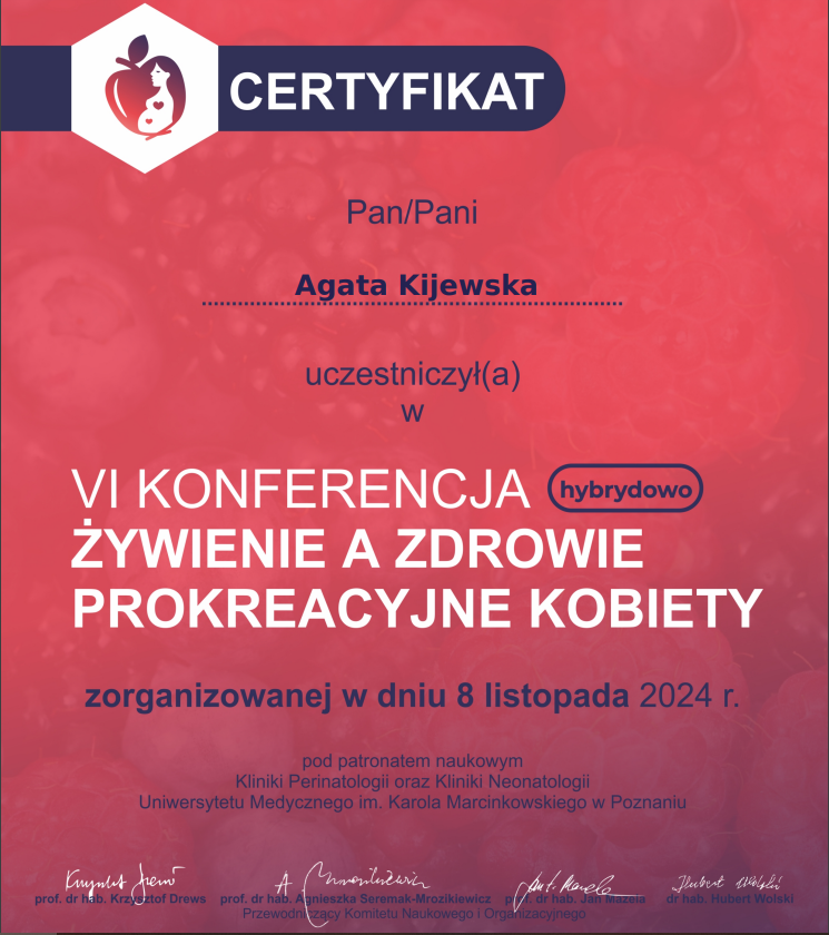 i jestem dyplomowanym dietetykiem klinicznym. Ukończyłam Uniwersytet Medyczny w Łodzi (studia zarówno I, jak i II stopnia). Moją specjalizacją, ale także ogromną pasją jest dietoterapia w zaburzeniach układu hormonalnego: PCOS, niepłodności oraz chorób endokrynnych, takich jak niedoczynność tarczycy i Hashimoto. W gabinecie skupiam się na kompleksowej opiece i diecie dla wsparcia płodności zarówno kobiet, jak i mężczyzn, aby spełnić ich marzenia o byciu rodzicem (starania naturalne, in vitro, prewencja poronień). Duże grono moich pacjentów to również osoby z problemami skórnymi, z którymi pracujemy nad znalezieniem i zaadresowaniem przyczyn trądziku.